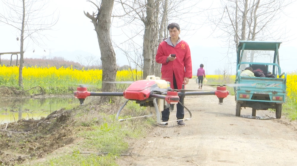 在柴桑區(qū)曹氏家庭農(nóng)場(chǎng),農(nóng)場(chǎng)主曹敬民正熟練地操作植保無(wú)人機(jī)。曹敬民告訴記者,這次疫情對(duì)農(nóng)場(chǎng)生產(chǎn)影響較小,通過(guò)政府信息化平臺(tái)和農(nóng)技專家的幫扶支持,對(duì)今年農(nóng)場(chǎng)增收充滿信心。