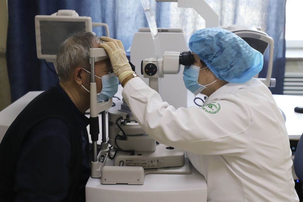 大慶眼科醫(yī)院,莉莉婭·波波娃醫(yī)生為患者做檢查。新華社發(fā) 徐凱鑫 攝