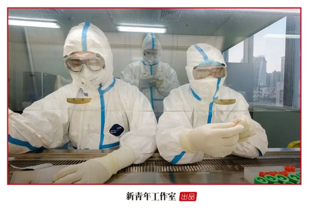 樣本管上的受檢者姓名、編號和實驗室檢測號,要反復(fù)核對三次以上,確保正確無誤。清點核對非常耗時,但是不能有一點馬虎。核酸提取需要大概19分鐘,核酸擴增大約需要一個半小時。從樣本清點到檢測報告,全程最快要3個多小時。我們進(jìn)了實驗室就不能吃東西、喝水,更不能上廁所,一待就是四個小時。