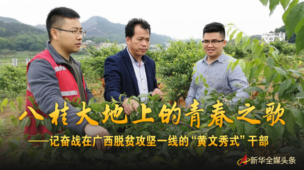 廣西馬山縣林圩鎮(zhèn)伏興村駐村第一書記周福波(左一)在查看村里已經(jīng)掛果的三華李(4月25日攝)。新華社記者 何偉 攝