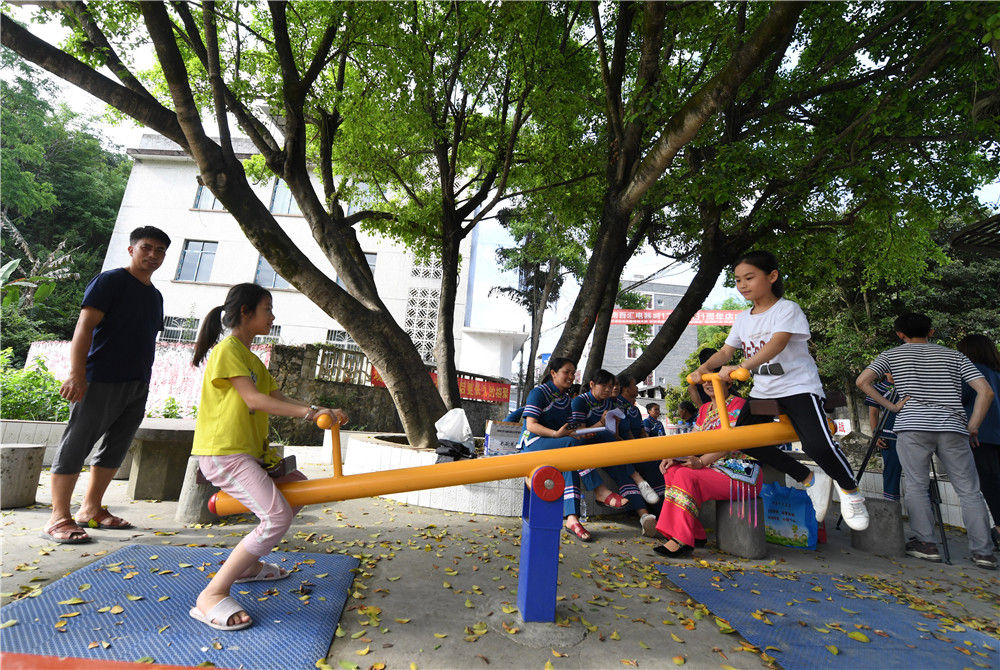 在廣西環(huán)江毛南族自治縣下南鄉(xiāng)下南社區(qū)松朗屯,兩名小朋友在玩耍(5月22日攝)。新華社記者 陸波岸 攝