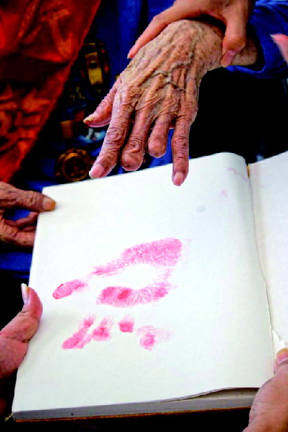 “我們一直在想辦法為抗戰(zhàn)老兵留下一些印記。最開始想出影集,可是考慮到經(jīng)費(fèi)的原因,我們決定留手印?!薄昂侠媳摇必?fù)責(zé)人老魚說(shuō),留手印是既有紀(jì)念意義、又“花錢少”的方式,“我們的經(jīng)費(fèi)很寶貴,每一分錢都要直接用在老兵身上?!?/p>