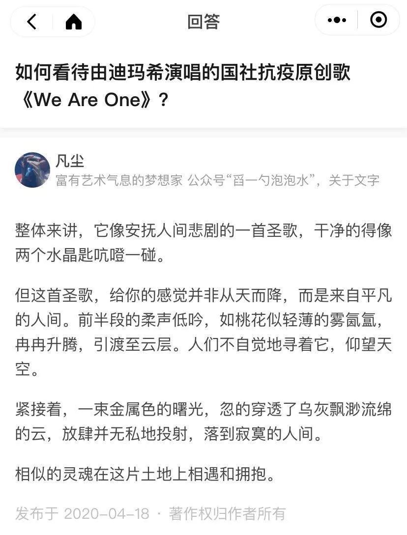 @Monstristing:歌聲有激勵磅礴的氣勢,又兼具一絲絲的溫柔,吟唱鋪展開星辰大海的浩瀚,真是美妙。聽完感覺元氣滿滿,祖國母親生日快樂!