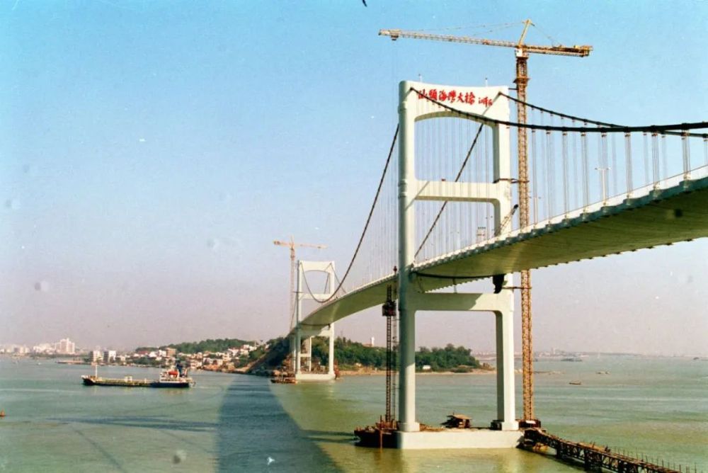 中國首座現(xiàn)代化大跨度懸索橋——廣東汕頭海灣大橋日前勝利竣工。新華社記者 王敬德 攝(1995年12月25日發(fā))