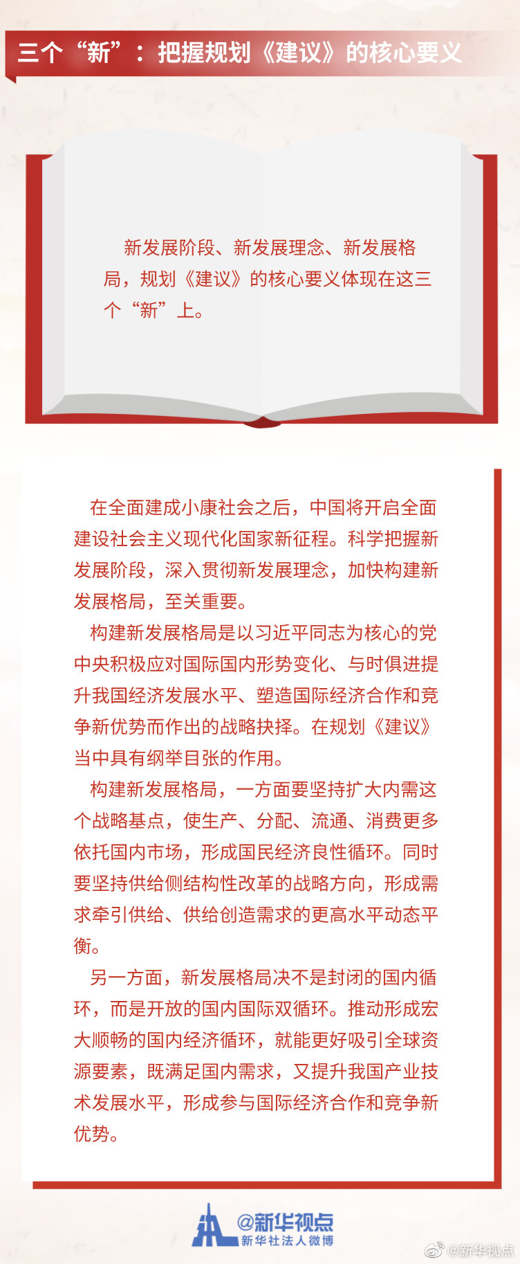 《中共中央關于制定國民經(jīng)濟和社會發(fā)展第十四個五年規(guī)劃和二〇三五年遠景目標的建議》3日公布。這份長約2萬字的文件,為未來5年及15年的中國發(fā)展勾勒藍圖。記者梳理出規(guī)劃《建議》中的“一二三四五”,為觀察中國發(fā)展走向提供一個獨特視角。
