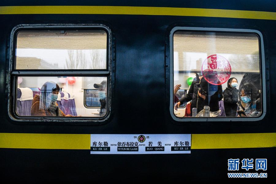 12月9日,在新疆庫爾勒站,旅客剛剛登上K9756次客運(yùn)列車。新華社記者 王菲 攝