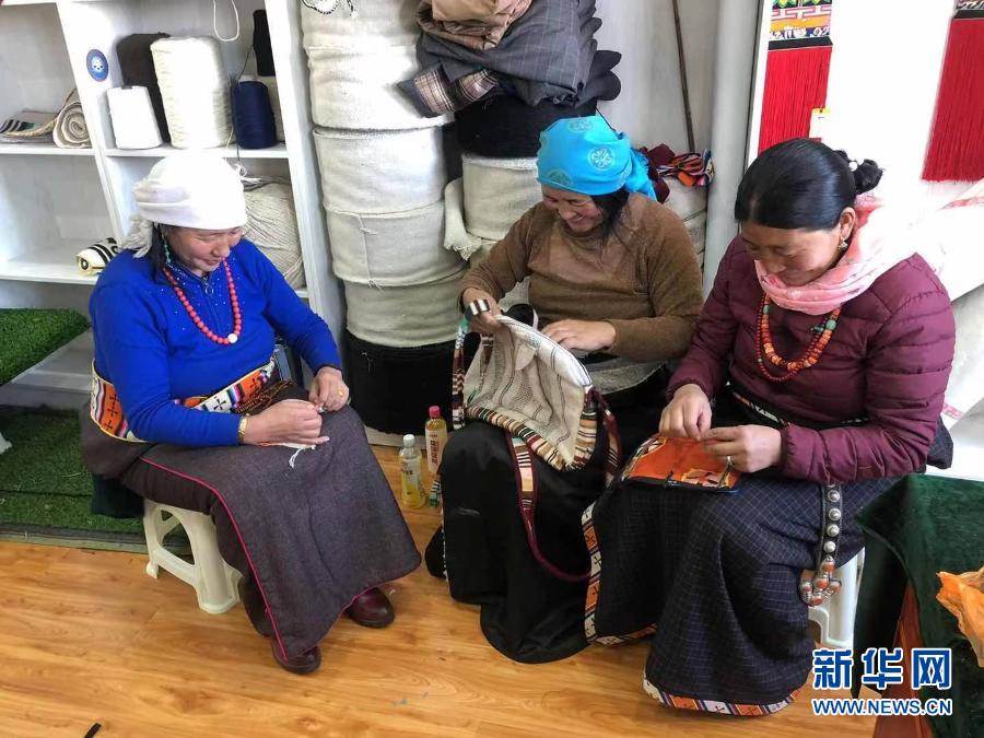 在青海省果洛藏族自治州瑪沁縣的扶貧產業(yè)孵化園內,贊根村村民在制作手工藝品(2020年11月9日攝)。新華社發(fā)