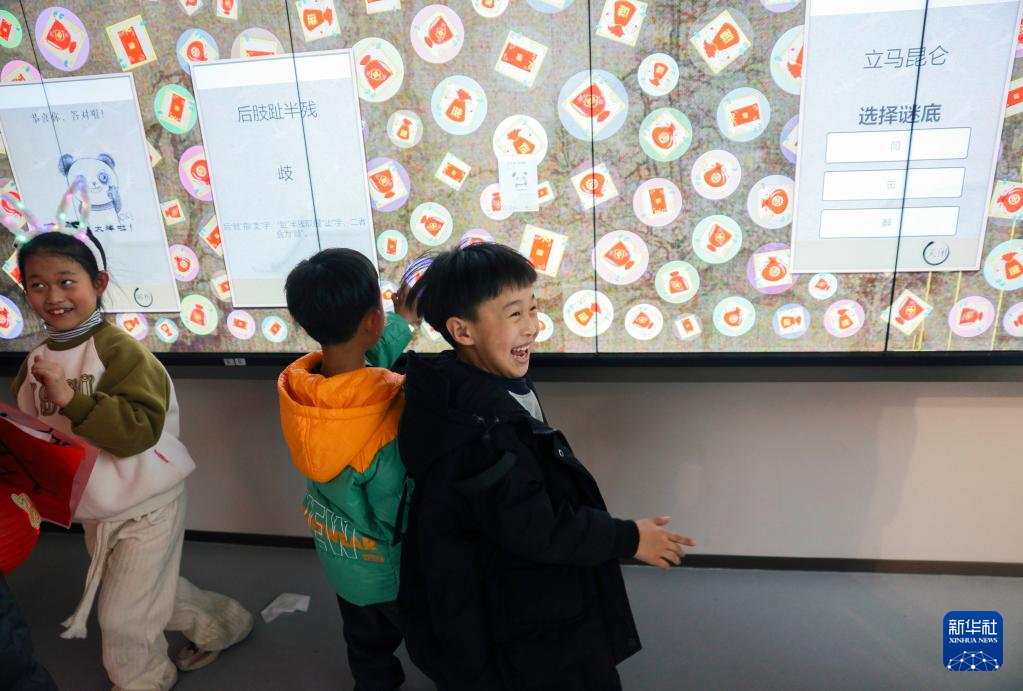 2月4日,小朋友在玩字谜竞猜游戏。