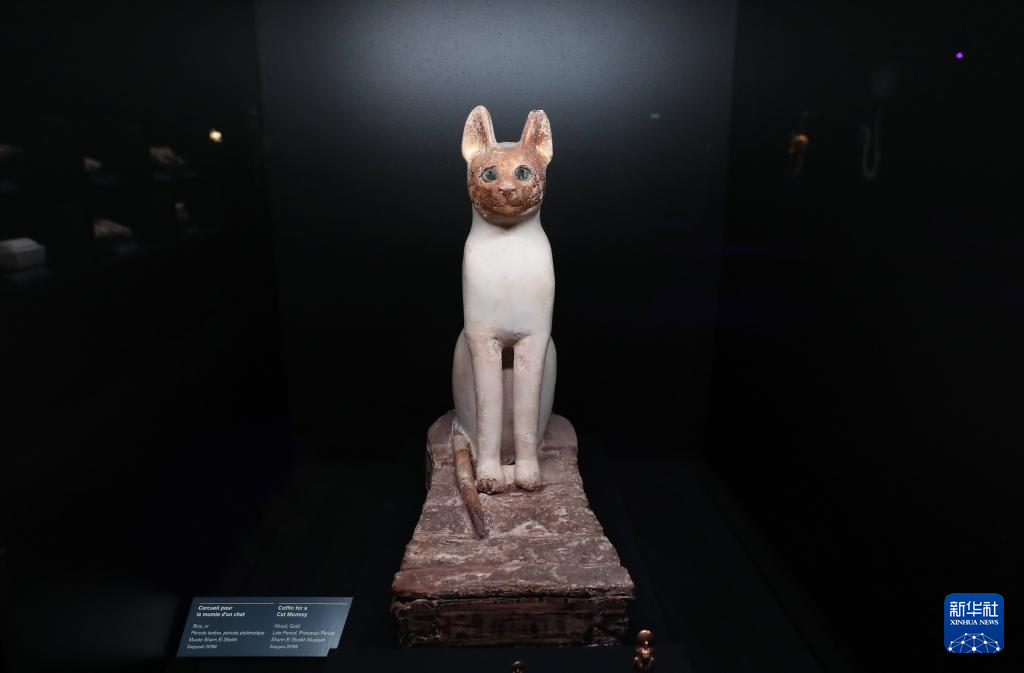这是4月6日在法国巴黎拍摄的猫木乃伊石棺。