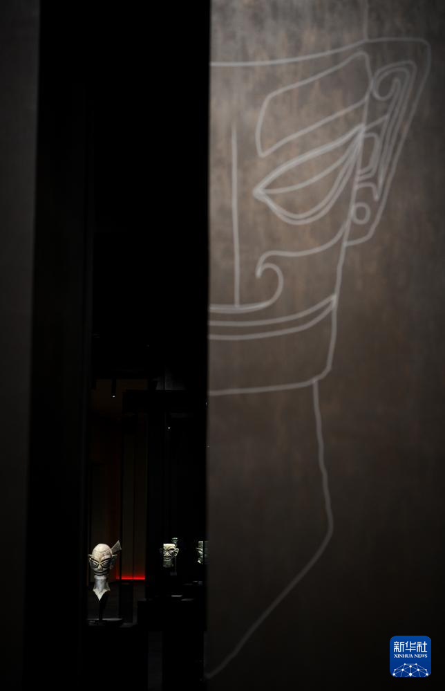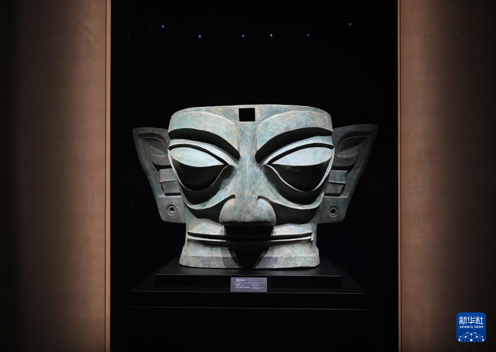 7月26日在三星堆博物馆新馆拍摄的青铜大面具。