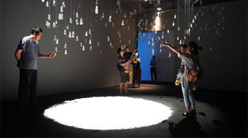 7月28日,参观者在“燕赵神韵——河北省民间文艺精品展”上拍照。