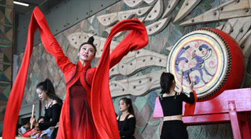 8月8日,参加暑期社会实践的大学生在活动开幕式现场表演节目。