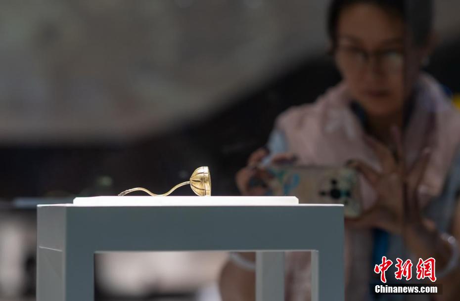 观众被展出的南京中华门外长干里宝塔顶宋长干寺地宫出土的鎏金莲蓬形银宝子吸引。泱波 摄
