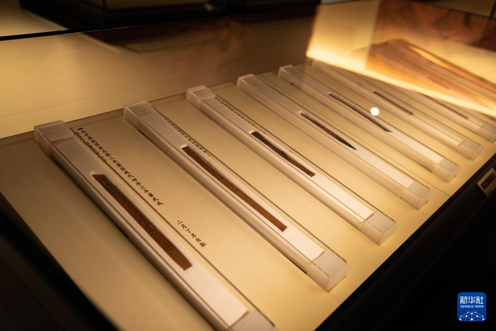 这是9月7日拍摄的甘肃简牍博物馆展厅内的部分简牍文物。新华社记者 郎兵兵 摄