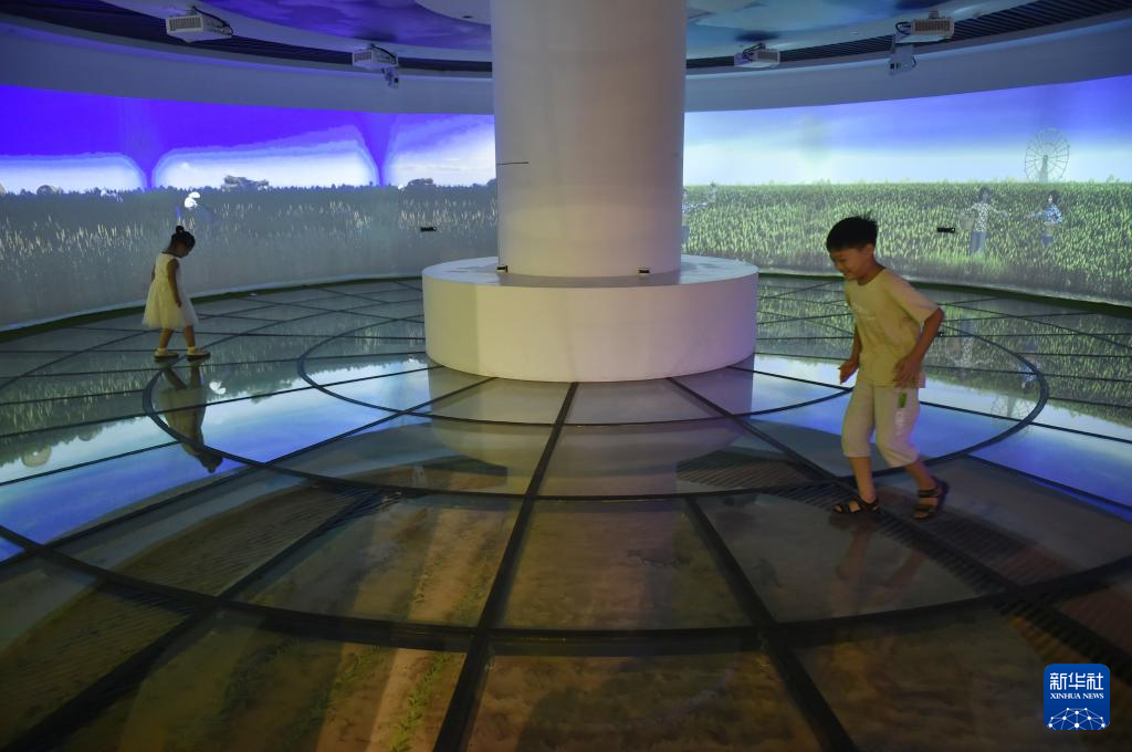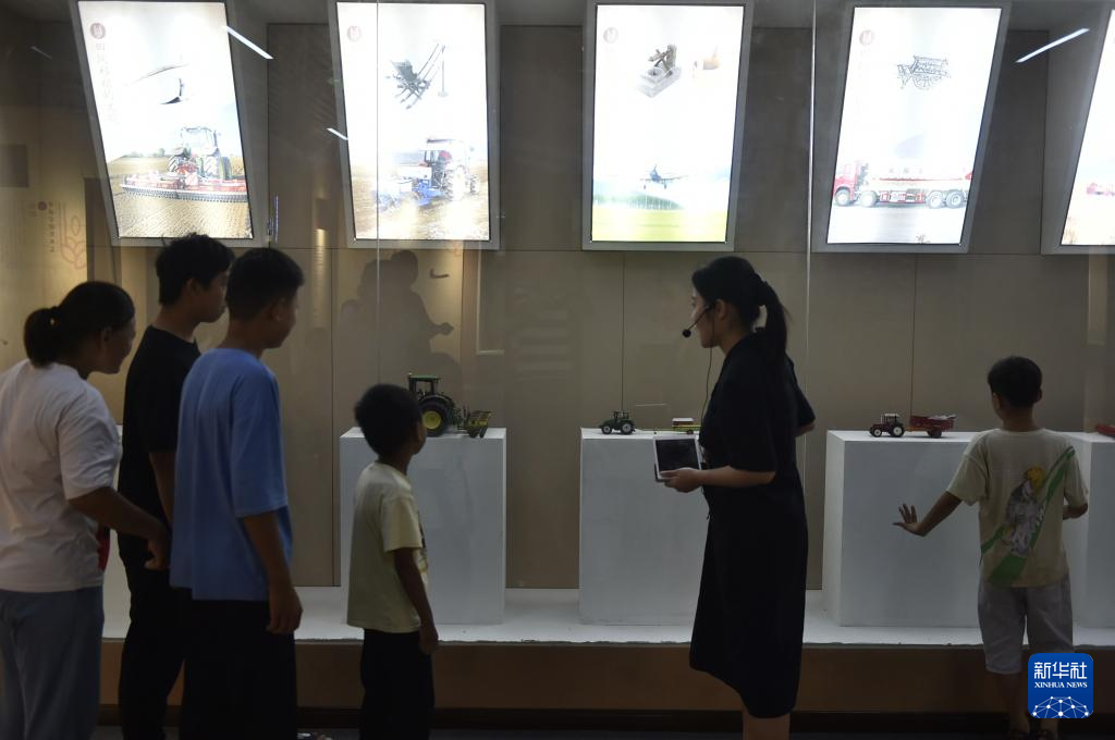 9月16日,小朋友在温县小麦博物馆内参观。
