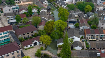 古籍修复师张奇对完成修补的古籍书页进行喷水压平操作(4月19日摄)。