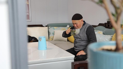 图为西藏自治区美术家协会名誉主席唐天源接受新华网专访
