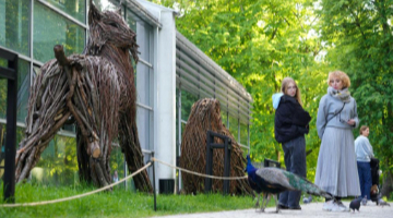 5月17日,游客在船山钟表博物馆内参观大型手表模型。