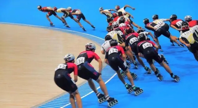 “韵味杭州”2023年中国轮滑系列赛在杭州钱塘轮滑中心亚运轮滑馆正式开赛。图为运动员们脚踏“风火轮”展开激烈竞速。图片来源:杭州日报