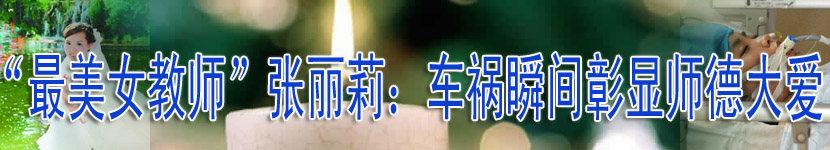 車禍瞬間挽救學(xué)生導(dǎo)致高位截癱的黑龍江省29歲女教師張麗莉,被網(wǎng)友稱贊為“最美女教師”。連日來,張麗莉的感人事跡激發(fā)起社會各界的愛心傳遞,舍己為人、挺身向前的奉獻精神正成為中國年輕一代道德價值體系中的火炬和航標(biāo)。 張麗莉,女,1983年生,大學(xué)本科,黑龍江省佳木斯市第十九中學(xué)的語文教師。2006年,她從大慶師范學(xué)院文學(xué)院03級本科班畢業(yè)后,分配到佳木斯市第十九中學(xué)任教。她在2012年5月8日的交通事故中,為救學(xué)生而受重傷,致使雙腿截肢。2012年5月15日、5月16日,張麗莉獲“全國五一勞動獎?wù)隆?、全國三八紅旗手等榮譽稱號。