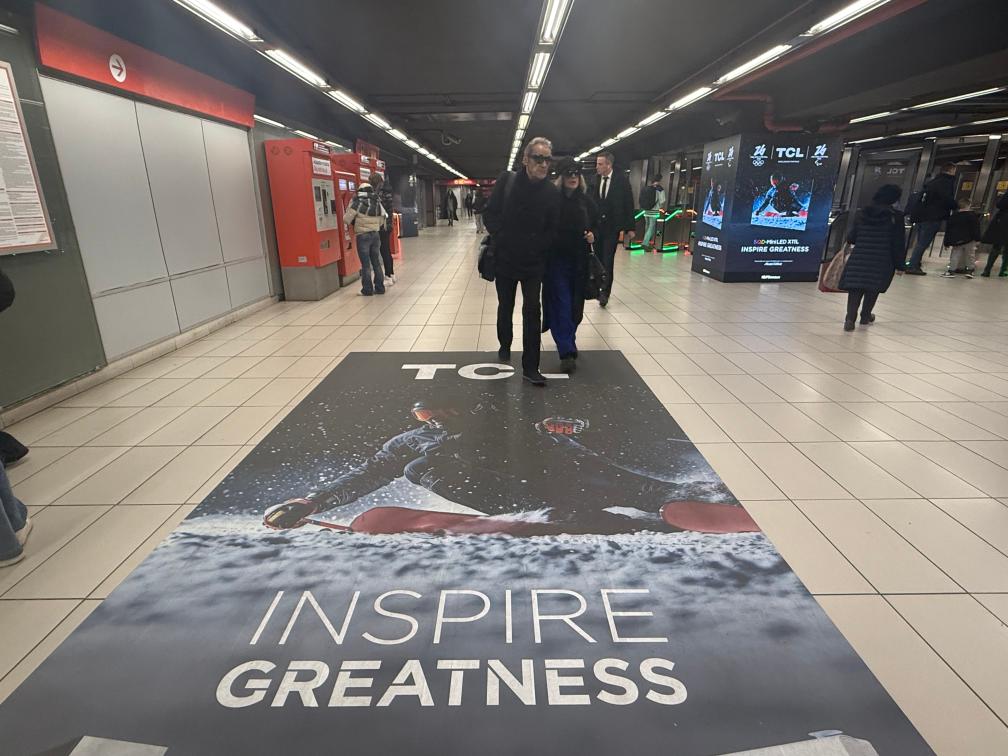 这是2026年2月13日在意大利米兰的地铁站中拍摄的TCL的广告。(手机图片)
