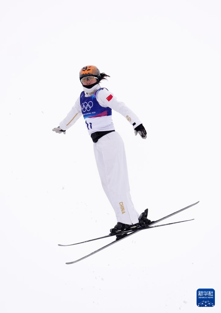 2月21日,中国队选手徐梦桃在完成第一跳后。最终,中国队获得铜牌。
