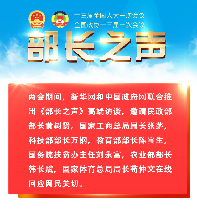 兩會期間,民政部部長黃樹賢做客新華網、中國政府網《部長之聲》,回應網民關切。