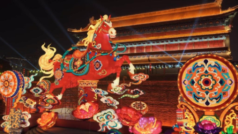 台湾的年味里,总少不了花灯的多彩。位于新北市三重区的古迹先啬宫日前点亮丙午年花灯,两层楼高的“青花瓷宫灯”尽显雅致,“麒麟献瑞”“熊猫步步高”等特色花灯巧思满满,财神造型主灯寓意“马上发财”,引得众多民众合影“接好运”。