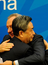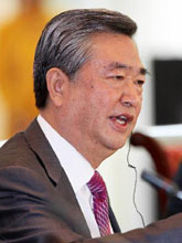 共同社社長兼總編輯石川聰在主席團(tuán)會議上發(fā)言