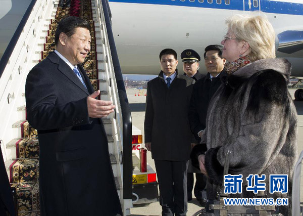 ????當?shù)貢r間13時50分許,習近平乘坐的專機抵達索契阿德列爾機場。習近平受到索契市負責人的歡迎。