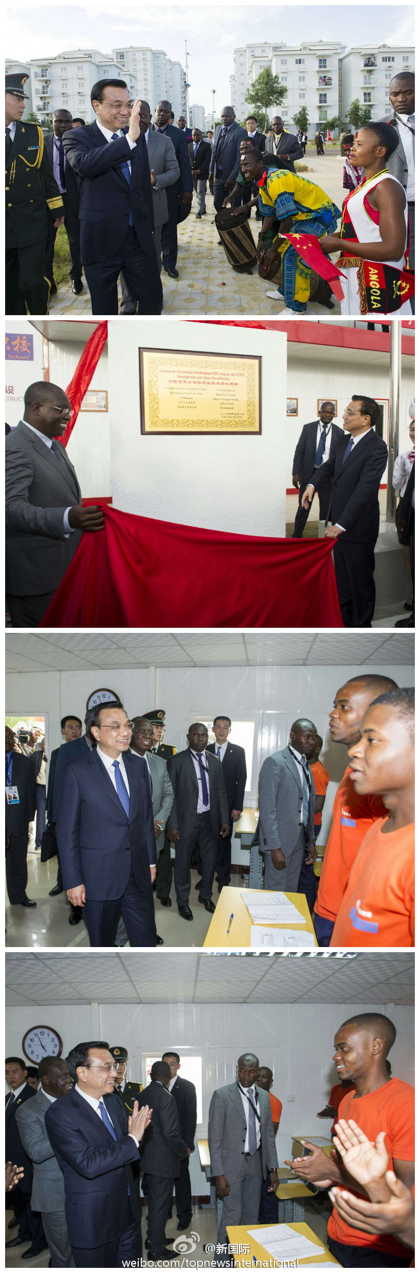 ???? 新華網(wǎng)北京5月9日電 據(jù)新華社“新國際”微博報道,8日,李克強總理甫抵安哥拉,就在安副總統(tǒng)維森特陪同下從機場直接來到中信百年職校參觀。他說,學校為當?shù)孛赓M培訓人才,給年輕人帶來了希望,把“希望工程”的理念帶到了非洲,一定要讓學校本土化,這樣才更有生命力。