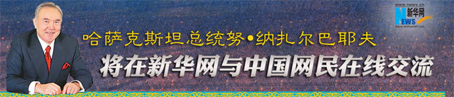 ??? 新華網(wǎng)上海5月20日電 哈薩克斯坦總統(tǒng)納扎爾巴耶夫20日接受新華網(wǎng)獨家訪談與中國網(wǎng)民在線交流,回答中國網(wǎng)民的問題。