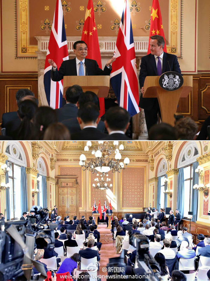 ???? 新華網(wǎng)北京6月18日電 據(jù)新華社“新國際”微博報(bào)道,17日李克強(qiáng)與卡梅倫共見記者時(shí)說,今天陽光明媚是個(gè)好日子,英國有句諺語:把握一個(gè)今天,勝似兩個(gè)明天。中國也常說“時(shí)不我待”。中英合作基礎(chǔ)好、潛力大,雙方有責(zé)任搶抓機(jī)遇,規(guī)劃新路線,鋪設(shè)快車道,使兩國關(guān)系明天更加燦爛。