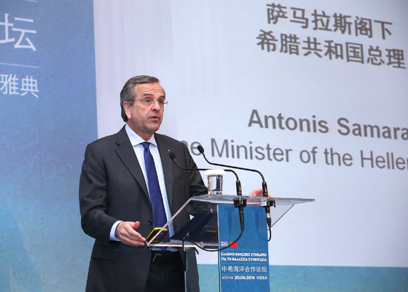 ??? 希臘總理薩馬拉斯20日在中希海洋合作論壇上說,李克強(qiáng)總理是我的朋友。我們彼此可以直視對方眼睛,因?yàn)槲覀兿嗷バ湃?,這種個(gè)人信任也代表了希臘人民對中國人民的感情。我們不會忘記,中國在希臘債務(wù)危機(jī)最困難時(shí)期無私地跟我們站在一起。