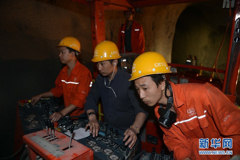 7月5日,工人們在烏茲別克斯坦安革連至琶布鐵路隧道緊張工作。(沙達(dá)提 攝)