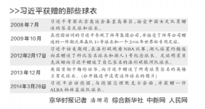????作為足球迷,能夠收獲著名球隊(duì)、球員的足球和球衣,恐怕是最讓別人羨慕的事兒了。習(xí)近平就曾經(jīng)收到球星貝克漢姆簽名的球衣、德甲勒沃庫(kù)森隊(duì)球衣、2006年世界杯專(zhuān)用足球等,也包括中國(guó)女子足球隊(duì)隊(duì)員簽名的足球。