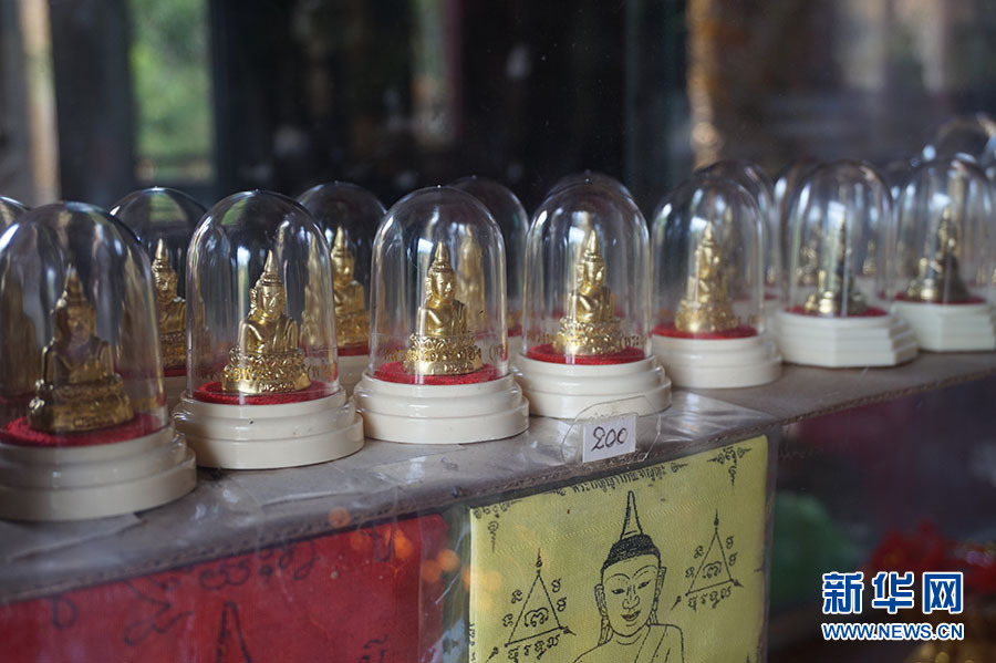 寺廟內(nèi)出售的半身金佛小模型 新華網(wǎng)記者 楊云燕 攝