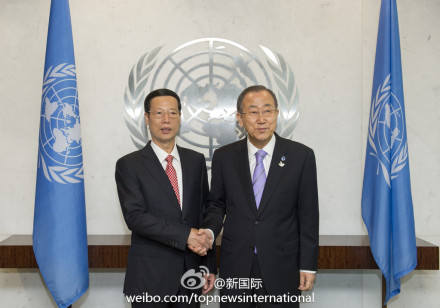 ????新華網(wǎng)北京9月23日電 據(jù)新華社“新國際”微博報道,國家主席習(xí)近平特使、國務(wù)院副總理張高麗22日在聯(lián)合國總部會見聯(lián)合國秘書長潘基文時表示,中國高度重視應(yīng)對氣候變化問題,高度重視聯(lián)合國在此方面的作用,愿繼續(xù)加強(qiáng)與聯(lián)合國合作,將提供600萬美元支持聯(lián)合國秘書長推動應(yīng)對氣候變化的南南合作。