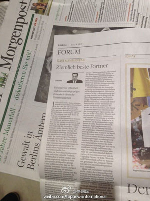 ????新華網(wǎng)北京10月10日電 據(jù)新華社“新國際”微博報(bào)道,克強(qiáng)總理當(dāng)?shù)貢r(shí)間9日抵達(dá)德國柏林,踏上了上任后對德國的第二次正式訪問。置身于柏林的大街小巷,記者時(shí)時(shí)處處能感受到對中國總理到訪的熱情歡迎和殷殷期待。