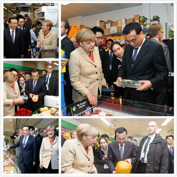 此外,默克爾總理還帶李總理光顧了柏林一家超市。默克爾向李總理推薦了一款可以寄給家人的明信片,并大方的買下,做為禮物送給李總理??粗羁偫砼踔聡?guó)的南瓜,小編真的忍不住要說(shuō),“真心沒(méi)咱的南瓜好吃啊!”