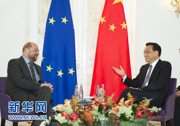 李克強指出,中國高度重視發(fā)展同包括歐洲議會在內(nèi)的歐盟機構(gòu)的關(guān)系,愿與歐方加強互信,深化合作,擴大共同利益,通過對話與協(xié)商解決分歧。我期待不久后在米蘭出席第十屆亞歐首腦會議期間,同歐洲理事會主席范龍佩、歐盟委員會主席巴羅佐舉行會晤,回顧過去,展望未來,推動中歐全面戰(zhàn)略伙伴關(guān)系取得新發(fā)展。期待歐洲議會繼續(xù)為此發(fā)揮積極作用。