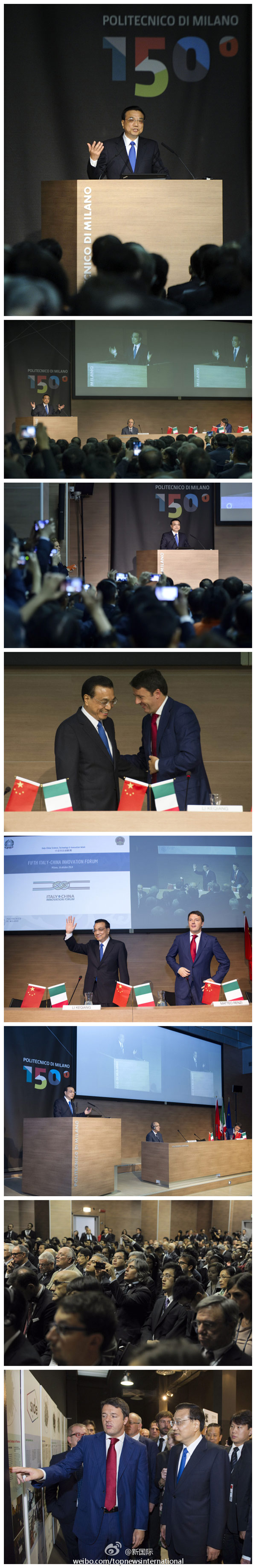 ????新華網(wǎng)北京10月16日電 據(jù)新華社“新國(guó)際”微博報(bào)道,李克強(qiáng)總理16日在意大利總理倫齊陪同下在米蘭理工大學(xué)出席中意創(chuàng)新周大會(huì)時(shí)說,我們的時(shí)代是創(chuàng)新的時(shí)代,科技創(chuàng)新不僅來(lái)自對(duì)科學(xué)的了解,對(duì)技術(shù)的把握,也源自創(chuàng)意,希望中意青年用東西方智慧碰撞出更多“奇思妙想”,讓創(chuàng)意促進(jìn)創(chuàng)新,進(jìn)而提升兩國(guó)產(chǎn)業(yè)競(jìng)爭(zhēng)力。