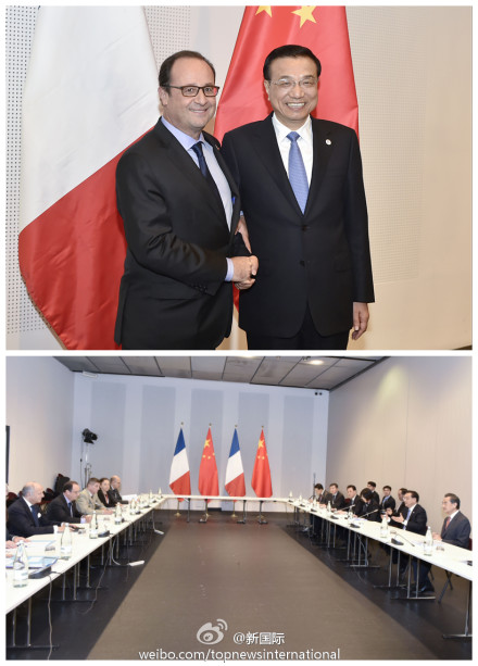 李克強(qiáng)會(huì)見奧朗德:為世界提供更多“中法制造”