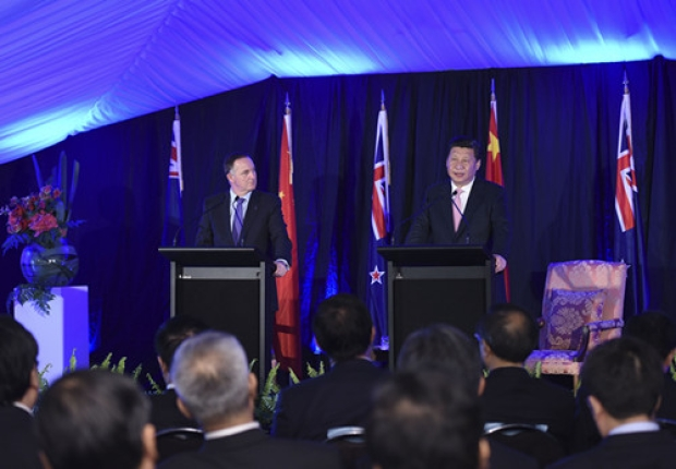 ??? 【畫面】在惠靈頓總理府,習(xí)主席同約翰·基總理舉行會談。接著,他們來到庭院里一頂臨時搭建的巨大白色帳篷里,出席系列合作文件簽字儀式并共見記者。中新關(guān)系由“全面合作關(guān)系”升級為“全面戰(zhàn)略伙伴關(guān)系”。