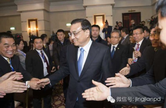 李克強(qiáng)參加中哈企業(yè)家委員會會議后,離開會場時與企業(yè)家們握手