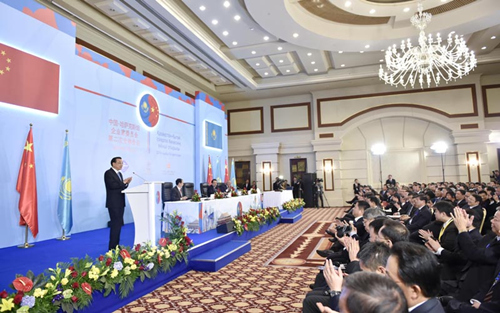????國(guó)務(wù)院總理李克強(qiáng)當(dāng)?shù)貢r(shí)間14日下午在阿斯塔納與哈薩克斯坦總理馬西莫夫共同出席中哈企業(yè)家委員會(huì)第二次會(huì)議閉幕式并致辭。