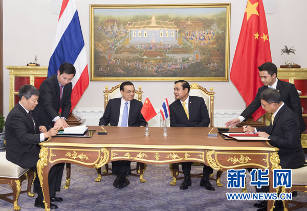 ????只用了不到1小時(shí),克強(qiáng)總理和巴育就談妥了。來(lái)到簽字廳時(shí),兩人的笑容說(shuō)明了一切——中泰鐵路和農(nóng)產(chǎn)品合作重啟了。