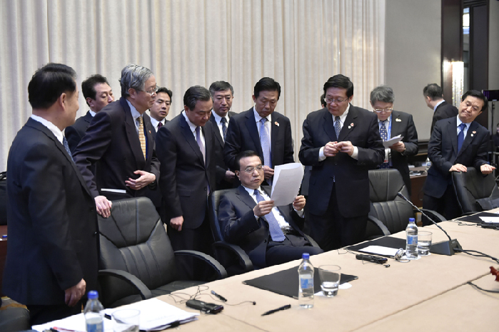 會議間隙的李克強(qiáng)。中新社 劉震 攝