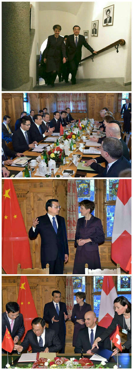 ??? 新華網(wǎng)北京1月22日電 據(jù)新華社“新國際”微博報道,當?shù)貢r間21日下午,國務(wù)院總理李克強同瑞士聯(lián)邦主席索瑪魯加舉行會談。李克強說,中方歡迎瑞方參與人民幣國際化進程,支持蘇黎世人民幣離岸市場建設(shè),愿給予瑞士500億元人民幣的合格境外投資者配額,希望瑞方為中資銀行在瑞開設(shè)分行提供便利。