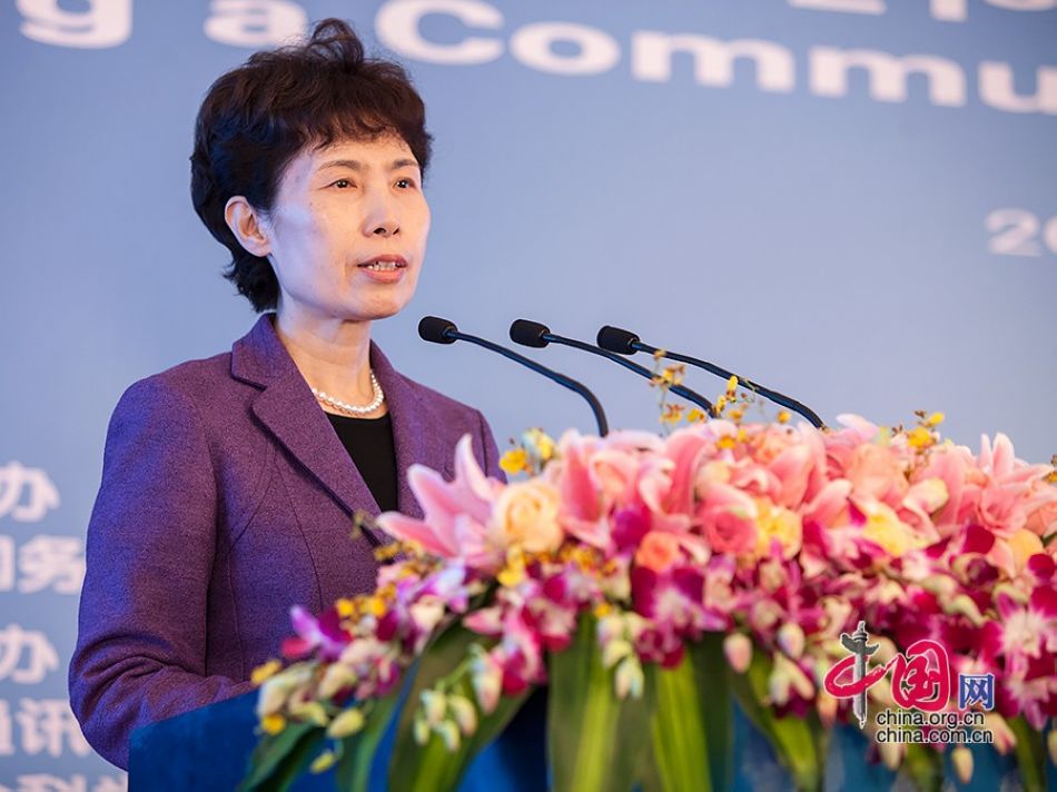 圖為中華人民共和國商務(wù)部副部長高燕在“21世紀(jì)海上絲綢之路國際研討會”高峰論壇發(fā)表演講。中國網(wǎng)記者 鄭亮 攝